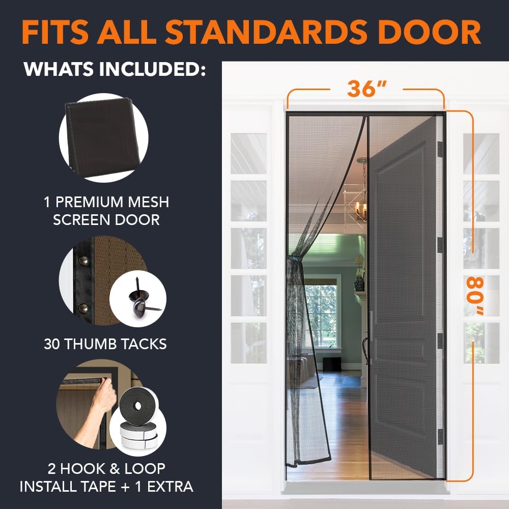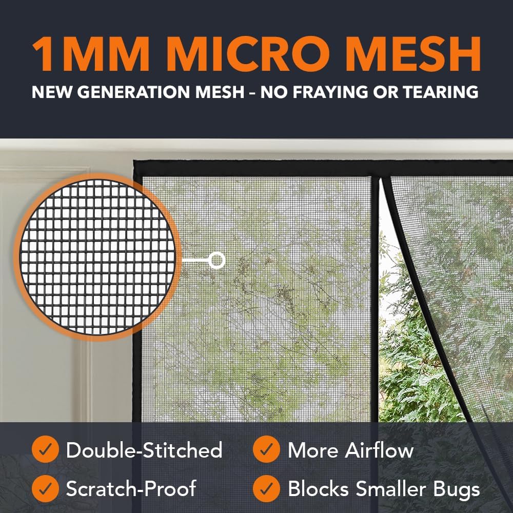 - SCRATCH-RESISTANT FINE MESH: BUILT FOR PETS & BUGS: Crafted with upgraded mesh screen material, our pet-tested design resists tearing while keeping out bugs; the breathable fine-weave allows airflow ideal bug screen for doorway use